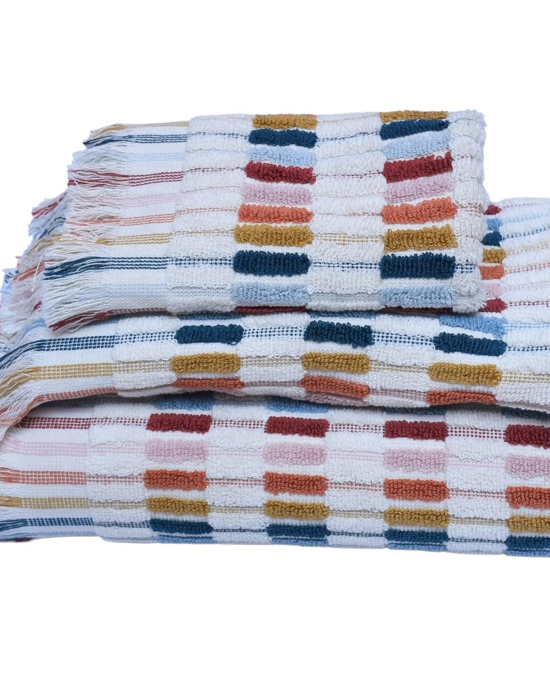 Made from premium 100% cotton, shaggy towels feature an extra-long, dense pile that creates a plush, velvety surface, offering exceptional softness and superior absorbency for a spa-like retreat. The distinctive woven pattern, showcased in vibrant green, blue, beige, or a multi-color mosaic, elevates their aesthetic, making them a statement piece for the design-savvy. With a substantial yet lightweight feel, these towels dry quickly while resisting wear, ensuring lasting vibrancy and texture. Perfect for those who value bold craftsmanship, the shaggy weave traps air for warmth and wicks moisture efficiently, blending functionality with a lavish, eye-catching appeal that enhances any setting.